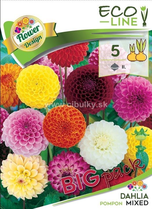 Balenie obsahuje mix farieb piatich pomponových dáhlii.