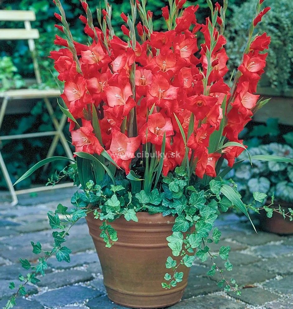 Červené gladioly Patty najlepšie vyniknú pri hromadnej výsadbe, sú ideálne do kvetinových záhonov aj do nádob.